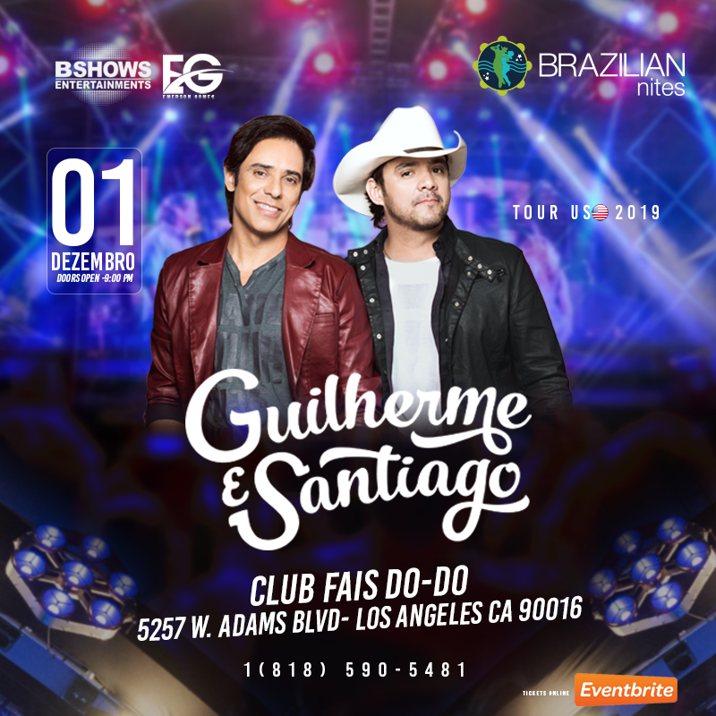 Los Angeles: Sertanejo com Guilherme e Santiago, Calisamba e DJ Gus Date December 1, 2019 Time 7:00 pm Location Los Angeles Venue Cafe Club Fais Do-Do